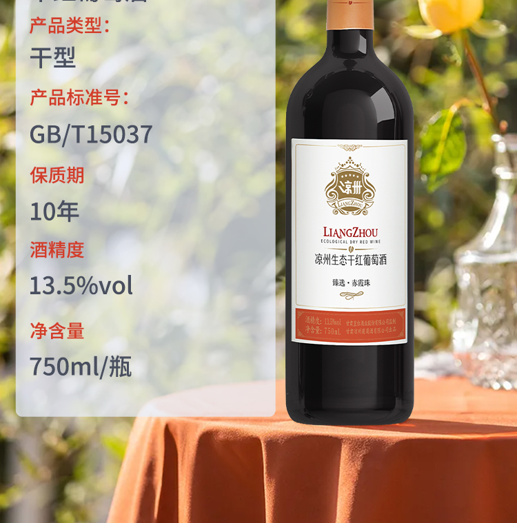 酒品名稱(chēng):涼州生態(tài)臻選·赤霞珠干紅葡萄酒