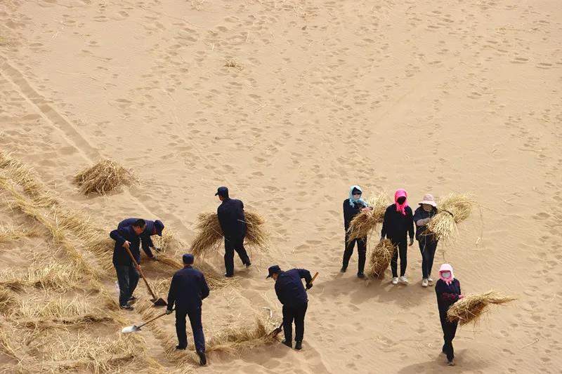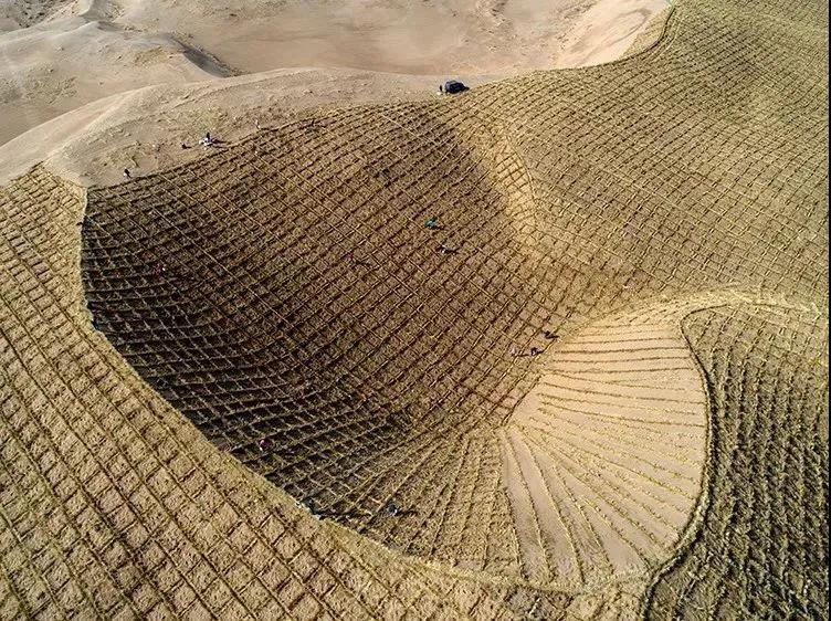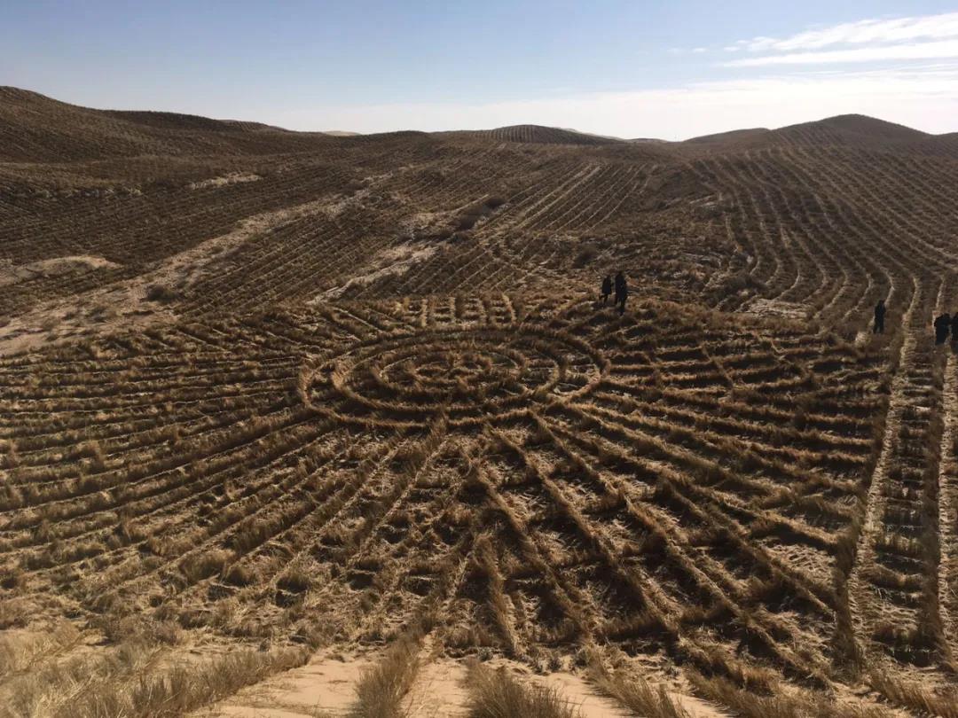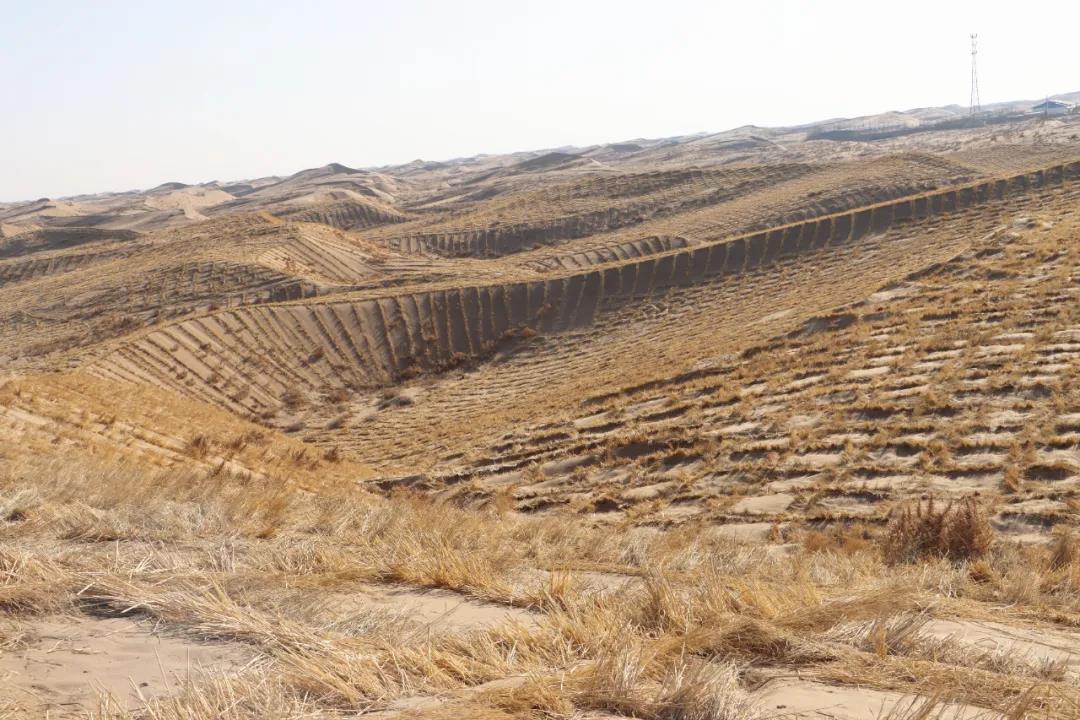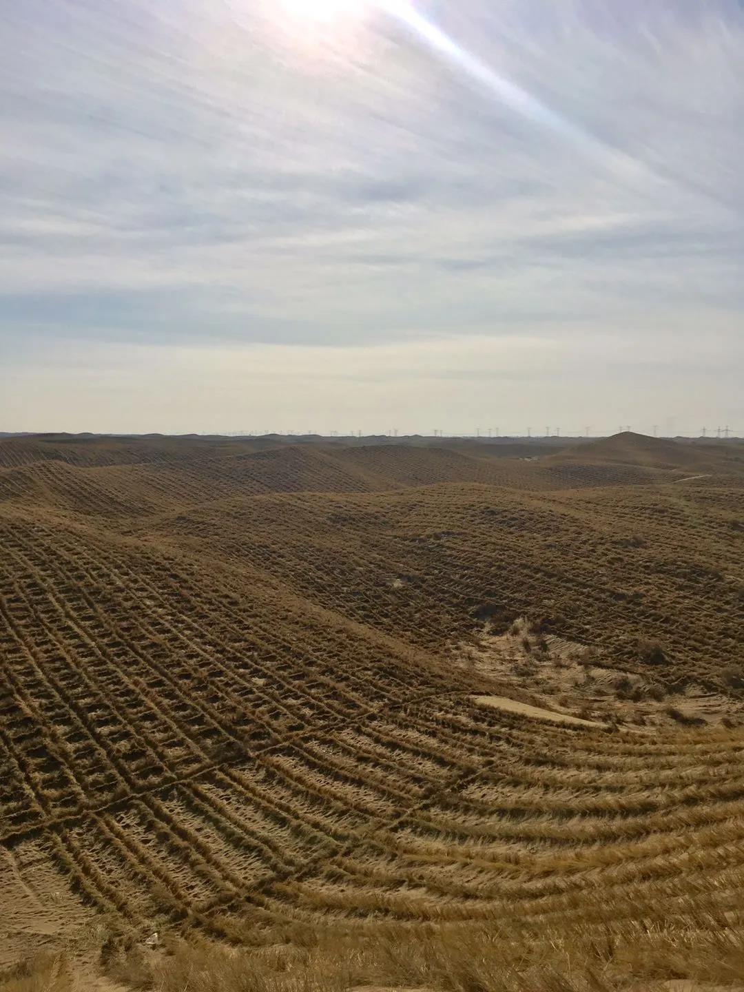 經(jīng)過了一整天的辛苦勞作,可謂戰(zhàn)果滿滿, 整齊劃一的“草方格”, 從大家的腳底下延伸至遠(yuǎn)方,像一道道迷人的風(fēng)景。無數(shù)的“草方格”,形成了成片沙障,將在這廣袤的沙海中,與風(fēng)沙牢牢抗衡。