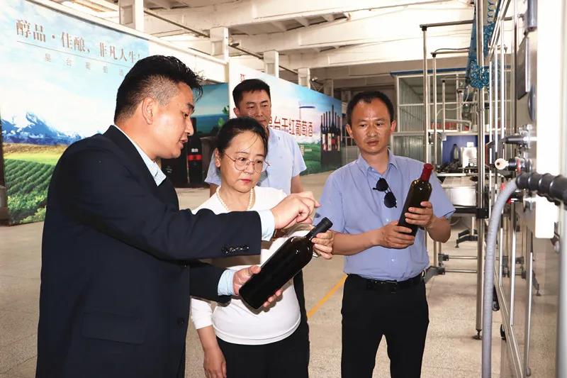 銷售公司總經(jīng)理姜紅如、副總經(jīng)理臧佰卓、葡萄酒車間副總經(jīng)理潘濤、生產(chǎn)部部長(zhǎng)李生祿一起陪同參觀調(diào)研。