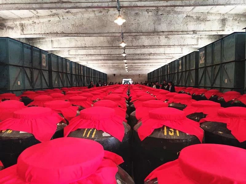 大家在半成品酒庫(kù)參觀大如草房子的酒海子,品嘗貯藏了三十多年色澤微黃、香氣撲鼻的老酒。
