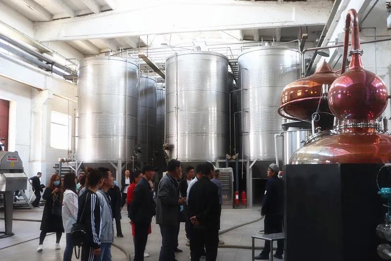 在葡萄酒壓榨車間,大家參觀了皇臺(tái)酒業(yè)先進(jìn)的立式、臥式葡萄酒灌,了解了皇臺(tái)葡萄產(chǎn)業(yè)的發(fā)展情況;在葡萄酒貯藏車間,品味了葡萄原酒。