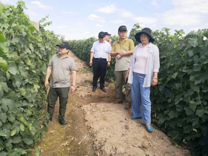 8月13日下午,中法合營(yíng)王朝葡萄釀酒有限公司總經(jīng)理李廣禾一行蒞臨皇臺(tái)酒業(yè)進(jìn)行了參觀,并不辭辛勞,趕赴皇臺(tái)葡萄基地進(jìn)行觀摩。