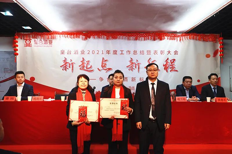 2022年1月26日下午,甘肅皇臺酒業(yè)股份有限公司在職工俱樂部召開2021年年度工作總結(jié)暨表彰大會?;逝_酒業(yè)董事長趙海峰,董事、總經(jīng)理代繼陳,副總經(jīng)理、生產(chǎn)總工程師陳兵,副總經(jīng)理?xiàng)罾?/span>財(cái)務(wù)總監(jiān)魏萬棟,營銷副總監(jiān)姚德軍,董事會秘書謝剛出席了此次大會。