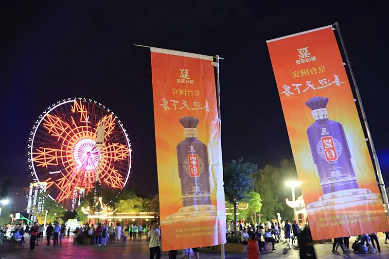 拱門高聳,彩旗飄飄,皇臺酒業(yè)巨型條幅高懸,與夜空中擎天而立的摩天輪遙相呼應,繽紛斑斕。舞臺?麗,人群熙攘,大家在綠樹環(huán)繞和皇臺酒的濃香中,共享夏日的熱烈。