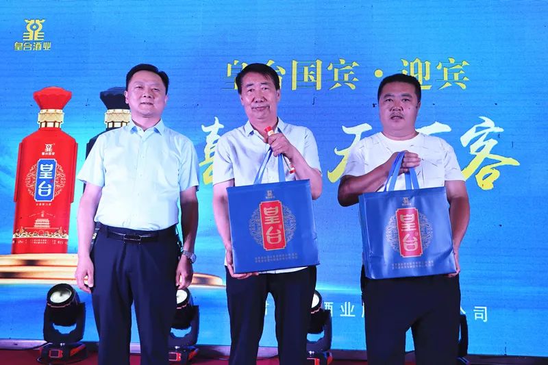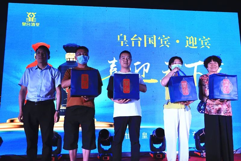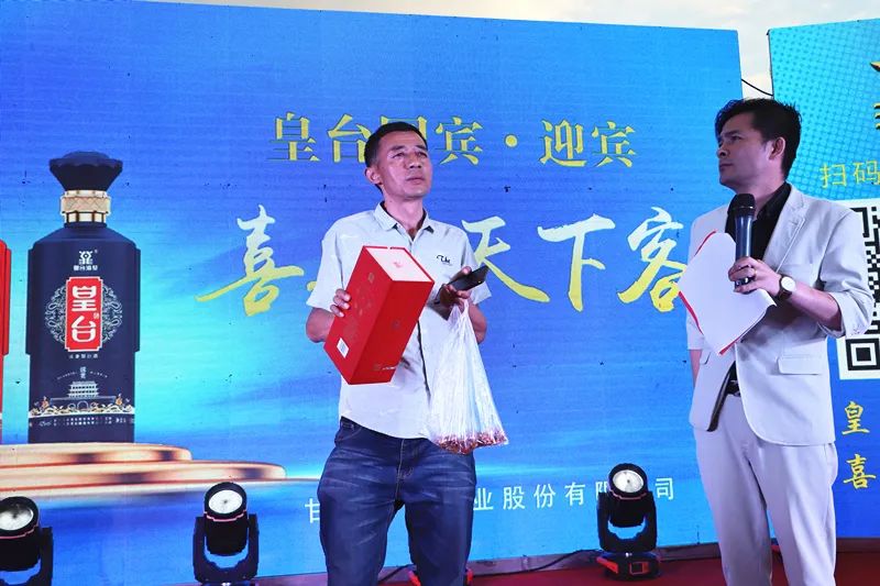 皇臺酒業(yè)國有董事劉興明為一等獎幸運觀眾頒發(fā)窖底原漿12 2盒