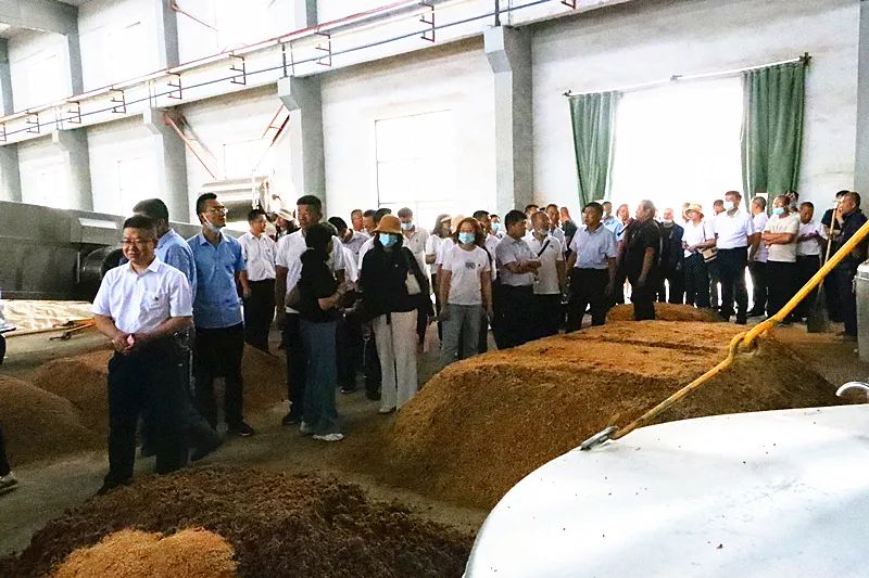 7月7日早上,培訓班一行共一百多人,到公司觀摩學習基層黨建工作,并參觀了白酒釀造車間及半成品酒庫。