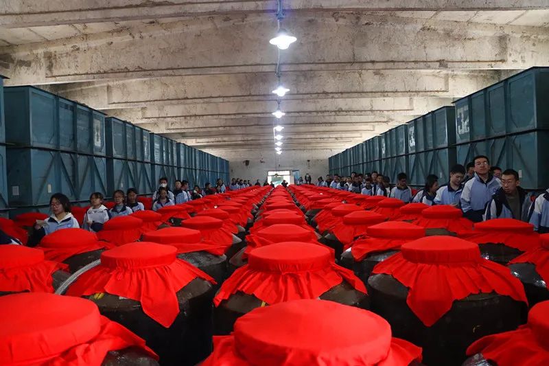 在公司廠史室,大家通過豐富的圖文和講解,了解了皇臺酒業(yè)的歷史沿革、發(fā)展歷程以及涼州酒的淵源流長;在生產(chǎn)車間,師生們近距離觀察了原料篩選、釀造、發(fā)酵到蒸餾等整個釀酒工藝過程,同學(xué)們充分結(jié)合生物學(xué)課本的發(fā)酵章節(jié),認(rèn)真聆聽,對課本上的“發(fā)酵工程及其應(yīng)用”有了更直觀的認(rèn)識,和更深刻的理解;在半成品酒庫,他們看到了蔚然壯觀的儲酒容器和酒海子。