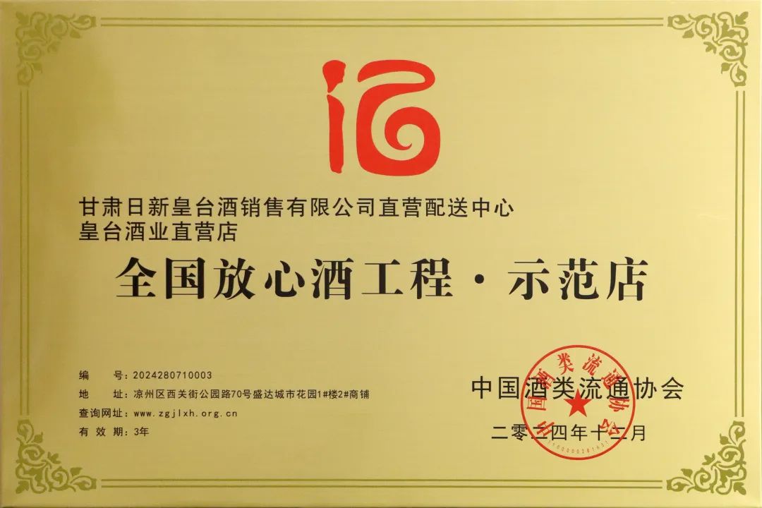 12月中旬,2024年中國酒類流通協(xié)會公布了全國放心酒工程示范企業(yè)(店)名單,甘肅皇臺酒業(yè)股份有限公司憑借優(yōu)異的品質(zhì)和信譽,成功榮獲了全國放心酒工程·示范企業(yè)殊榮。與此同時,甘肅日新皇臺酒銷售有限公司直營配送中心也因其優(yōu)質(zhì)的服務(wù)和管理,榮獲了全國放心酒工程·示范店稱號。