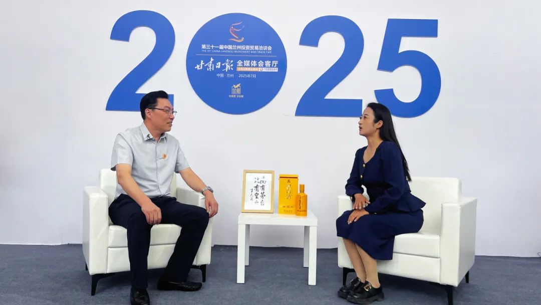 ▲甘肅皇臺(tái)酒業(yè)股份有限公司副總經(jīng)理兼營銷總監(jiān)修衛(wèi)華參與蘭洽會(huì)全媒體會(huì)客廳訪談