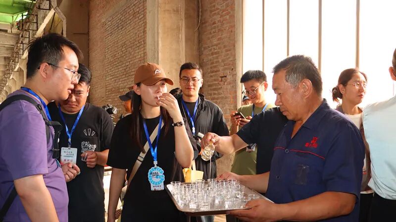 文旅創(chuàng)作者團隊攜帶著專業(yè)攝影設(shè)備,依次探訪了涼州酒文化展覽室、釀酒生產(chǎn)車間、半成品酒庫以及葡萄酒儲存車間。在釀酒車間,大家“觀糧醅、聞酒香、品原漿”,現(xiàn)場品鑒了熱氣騰騰的原度酒,了解了皇臺“小窖佳釀”的釀酒工藝,見證美酒從原料到佳釀的奇妙蛻變;尤其是蔚然壯觀的白酒半成品庫,堪稱網(wǎng)紅打卡地,更是令文旅創(chuàng)作者們深感震撼,手機、相機頻頻閃爍,大家通過鏡頭捕捉皇臺酒的醉人芬芳。