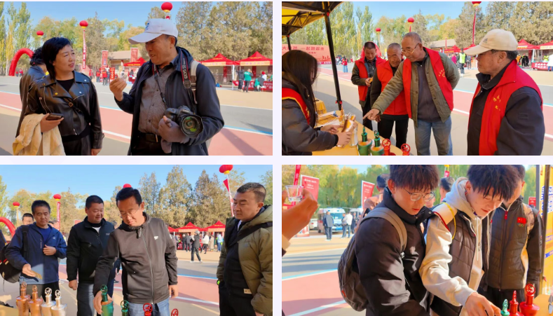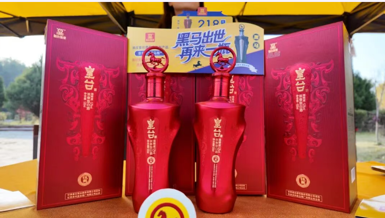 活動現(xiàn)場,皇臺酒業(yè)展位格外引人注目,工作人員熱情地為往來參與者遞上酒杯,邀請大家品賞佳釀。展臺上,皇臺奔馬系列產(chǎn)品整齊陳列,酒瓶上靈動的奔馬在秋光中熠熠生輝,與活動 “馳步追夢” 的寓意相呼應(yīng)。